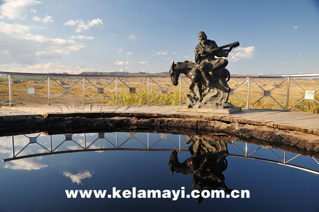 1982年10月1日,原新疆石油管理局和市政府在黑油山竖立了近3米高的纪念碑和一尊老人骑着毛驴弹奏热瓦普的塑像。